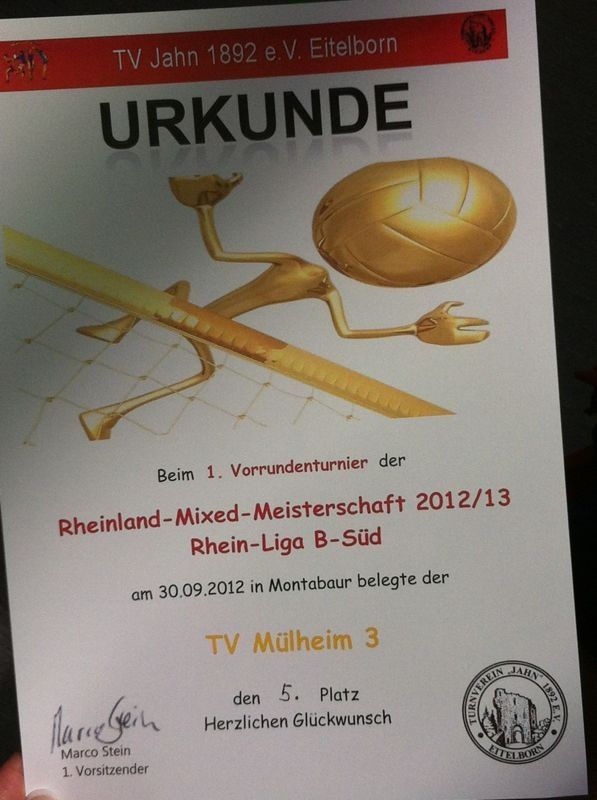 11 Mannschaften nahmen am 1. Turnier in Montabaur teil, darunter die 2. und 3. Mannschaft des TV Mülheim. Als Ausrichter fungierte der TV Jahn Eitelborn 2.
